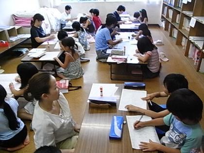 4日間続いた漢字・計算パワーアップ教室も、今日で最終日。参加した子どもたちは、とても意欲的に今までの学習の復習に取り組んでいました。4,5人の子どもたちに1人の先生方が付いて、集中して学習している姿が微笑ましかったです。さいごには、「がんばったで賞」が配られます。残りの夏休み期間も自分の力で、勉強しましょう。