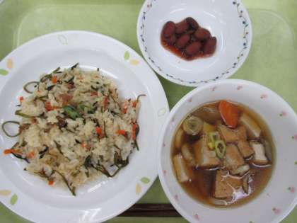 磯おこわ 牛乳 煮豆 とりごぼう汁