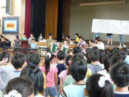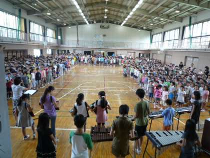 異学期最後の歌が、「ほしまつり」という、夏にふさわしい歌でした。1,2,3年生と4,5,6年生がパートで分かれ、きれいな歌声が体育館に響きました。音楽クラブの演奏もとてもすてきでした。
