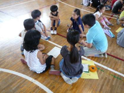 1時間目に、4年2組と2年2組の兄弟学級の交流会を見ました。今日は、紙飛行機大会を計画して、4年生が一生懸命リードしていました。飛行機に名前をつけたり、飾り付けをしたり、グループで輪になって作業をしていました。そのあと、グループの2年生が飛行機を飛ばして4年生が測定し、グループの跳んだ距離でしょうぶをしていました。4年生のリーダーぶりがとても懸命で、何とかグループをまとめることができていました。こんな経験が次のグループ活動に役立ちます。自信を持ちましょう。