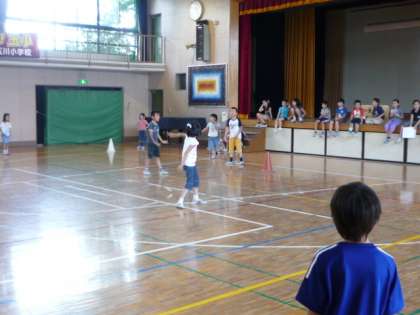 今日の3校時、体育館で4年4組と2年4組との交流がありました。体育館に行ってみると、もうすでにドッジボール大会が開催されていました。4年生がリーダーとなって、チームを引っ張っている様子がよくわかりました。2年生は4年生の投げる強いボールに逃げ回っていました。