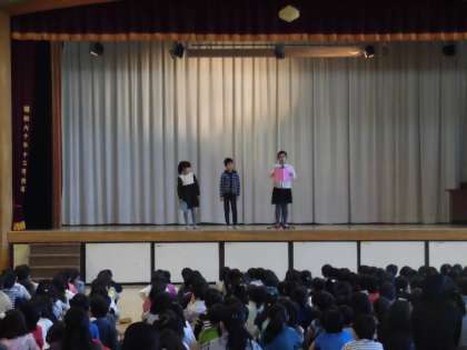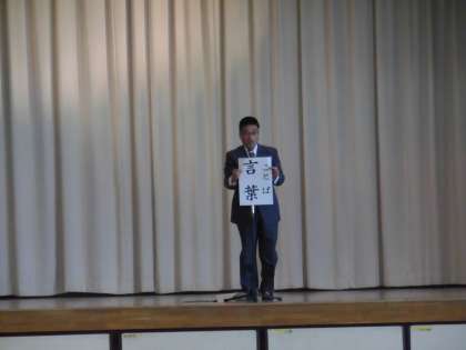 校長先生からはきれいで美しい言葉について話があり、児童代表の言葉として3年生の代表3人が新たな年に向けて目標を語りました。
