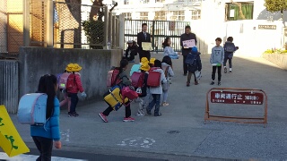 正門、西門、昇降口で元気にあいさつをする子供たちの姿が爽やかです。代表委員会がユニセフ募金をしています。
