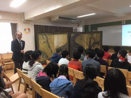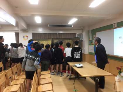 6年生4クラスが1クラス毎に尾形光琳の国宝を題材に美術鑑賞教室の出前授業を受けました。