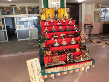節分も終わり、季節は三寒四温を繰り返し、春が一歩一歩やってきています。さて、今年も中央昇降口にお雛さまが勢揃いしました。フレンドシップの呼びかけでお手伝いのお母さん達が集まり飾ってくださいました。