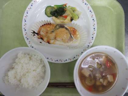 ごはん 牛乳 魚のみそマヨネーズ焼き 和風サラダ けんちん汁