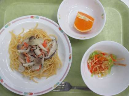 スパゲティきのこソース 牛乳 じゃが芋のハニーサラダ 清見オレンジ