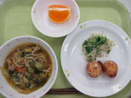 醤油ラーメン 牛乳 じゃが丸君 寒天と切干大根のサラダ