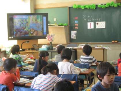 また、算数の学習で10までの数を学習しているクラスもあります。大きなテレビに数が出てわかりやすく授業が進んでいます。