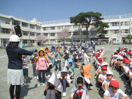 初めての避難訓練です。みんな静かにきちんとできました。避難訓練は命を守る大事な練習です。しっかり取り組みたいと思います。