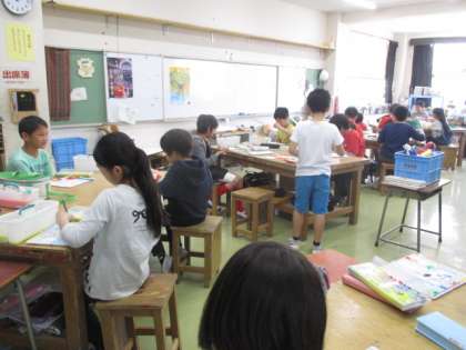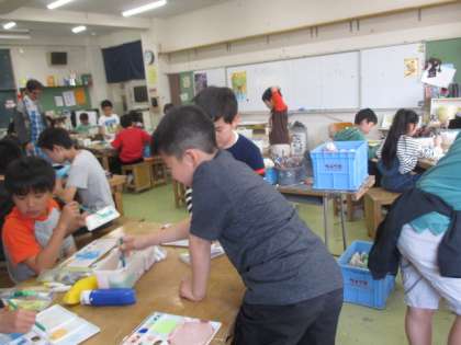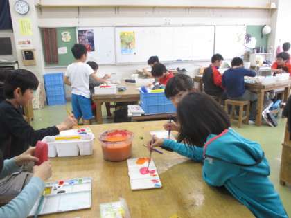 5年生が、図工の学習をしています。「太陽の色」ということで、自分でいろいろな太陽の色を作りあげています。どんな作品になるか楽しみです。