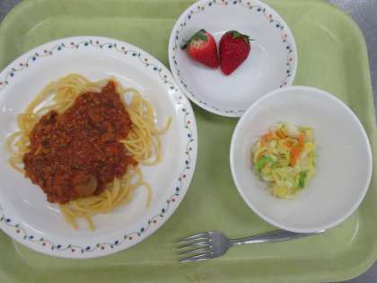 スパゲティミートソース 牛乳 きゃべつのサラダ いちご