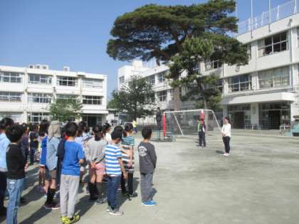 今朝の全校朝会です。1年生も今日は一番早く並ぶことができました。校長先生のお話は、読書週間についてのお話でした。ゴールデンウィークに一冊でも本に親しんでほしいとのことです。本に親しむ機会があるといいですね。