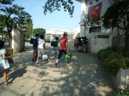 正門に立って子どもたちを迎えました。どの子も一回りくらい大きくなったように、たくましく、元気に登校してきました。手には、自由研究の作品を持っている子もいました。久しぶりの学校にみんなにこにこ顔でした。