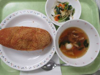 きなこ揚げパン 牛乳 春雨スープ ナムル