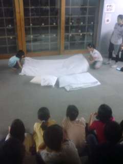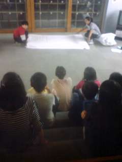 生活係が補助員の人から布団の敷き方、たたみかたについて教わりました。これを部屋の人に教えます。室内レクです。明朝が楽しみです。
