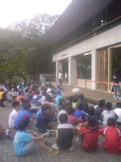 川場移動教室2日目の東京とは一味違う20℃前後の清々しい朝を迎えました。一晩中騒いで注意された部屋もありましたが、みんな元気に朝会に顔を出しました。朝食もしっかり食べていました。