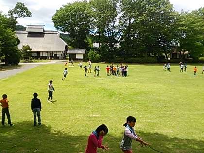 川場村歴史民俗資料館の見学は、クラスごとに自由です。その間、他の2クラスは広場でゆっくり遊びました。
