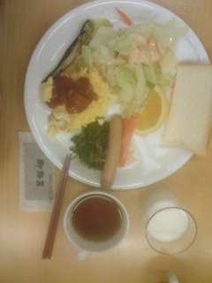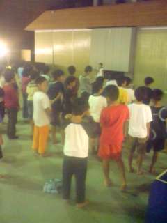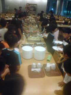 朝からあいにくの雨です。誰一人として大きな怪我や病気になることもなく、元気に3日目の朝を迎え、最後の朝会と朝食(バイキング形式)となりました。