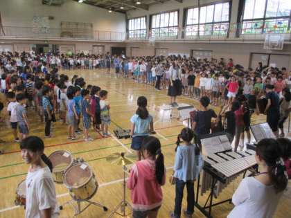 今朝は、音楽に集会でした。「大空賛歌」を全員で大きな声で歌いました。きれいな声が出ていて素晴らしい合唱でした。