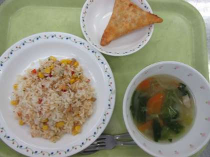 ナシゴレン 牛乳 サモサ レタススープ