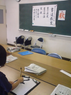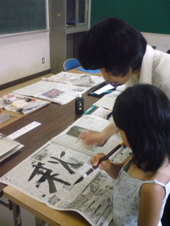 今日は書道教室も開催されています。講師は、保護者の渋谷さんです。三年生ばかりでしたが、一生懸命頑張ってやっています。
