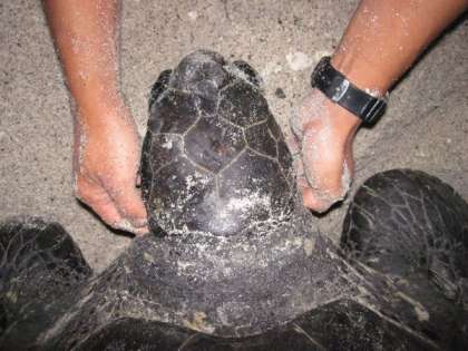 この母ガメは2002年から小笠原での産卵が確認されており、今年で3度目の確認です。