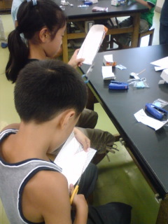 今日も、カルチャースクールの理科実験教室が行われました。講師は、昨日と同じく東京工業大のOBの方々です。今日の実験は、ポンポン船です。お話を聞いたあと、船づくりに取りかかりました。