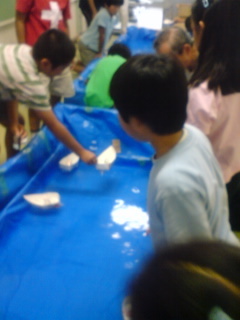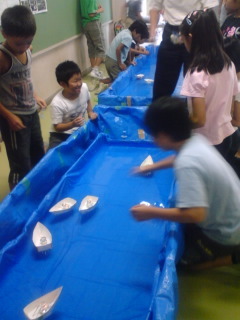 今日の実験は、水の固体、液体、気体の性質を使った内容です。水が液体から気体に変わる時のエネルギーを動力にしたポンポン船の動きを楽しんでいました。クラリカの皆様、二日間ありがとうございました。こどもたちの嬉々とした表情が印象的てした。