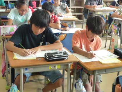 川場移動教室からまだ1週間も経っていない5年生ですが、国語の授業を見てみると、とても真剣に説明文の段落ごとの要点のみつけかたについての学習をしていて感心しました。要点・要約・要旨という流れで筆者の言いたいことをつかんでいく学習、子どもたちの成長が楽しみです。