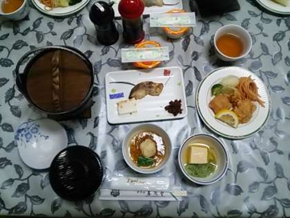 1泊目の夕食です。支配人から日光名物のゆば料理の説明がありました。
