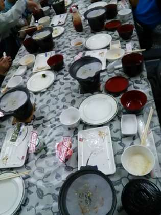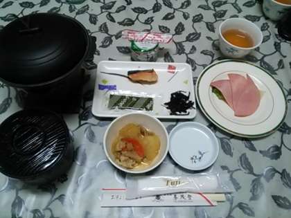 今朝は小雨の為、朝会は朝食会場で行いました。昨夜10時過ぎにはほぼ寝ついた子ども達、朝食ももりもり食べています。