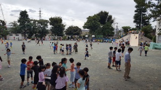 二学期がはじまり、子供たちの元気な声が戻ってきました。中休み、校庭は楽しそうに遊ぶ子供たちでいっぱいでした。