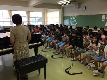 2学期が始まってやっと少し落ち着いてきました。子どもたちはいろいろな学習に取り組んでいます。2,3年の音楽は北先生が教えてくださっています。3年生はリコーダーの学習です。きれいな音色を出すようがんばっています。