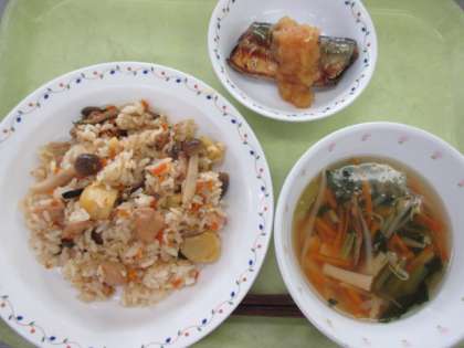 ふき寄せご飯 牛乳 さんまの塩焼き 沢煮椀