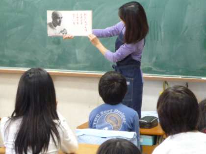 今朝の朝読書の時間に、5年生の各教室で「おはなしバスケット」の皆さんによる読み聞かせをしていただきました。5年3組では、子どもたちが熱心に読み手の読む「おじいさんの顔」という面白い本に引き込まれていました。たくさんの本を子どもたちに紹介していただき、感謝いたしております。