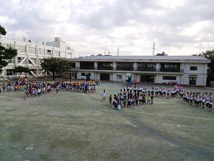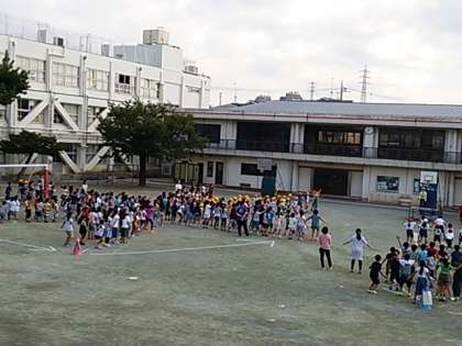 今日は玉チャレ、朝の10分間の活動です。低学年は今学期初めてのじゃんけんサーキットです。