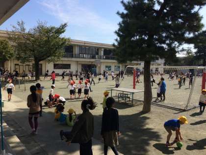 本当に久々のよい天気です。子どもたちも休み時間はみんな外へ出て元気に遊んでいます。校庭が子どもでいっぱいです。