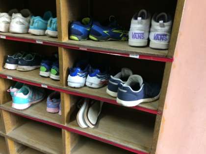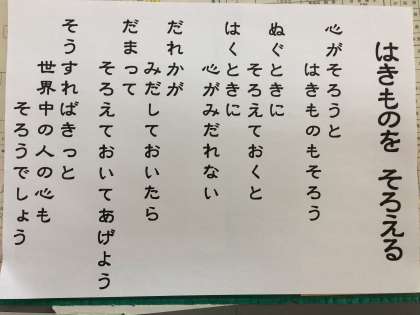 朝会の校長先生のお話で「はきものを そろえる」という詩を読まれました。確かにこのところくつ箱がちょっと乱れています。