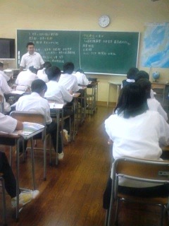 今日の午後、3校合同協議会を玉川中学校で行いました。玉小、中小、玉中のそれぞれの学校の先生たちが連携して地域の子どもたちのよりよい教育を考えて行こうという趣旨で取り組んでいます。今回は、玉中の2学期が始まったばかりの授業参観を行い、親睦のバレーボールをし、その後話し合いを行いました。