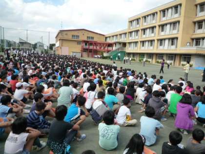 今日の2校時、避難訓練がありました。今日の避難訓練は、まず、校庭に避難して、次に玉川中に2次避難する訓練でした。校庭の避難の仕方が、おしゃべりする声が聞こえずとても上手でした。また、玉川中では、中町小・玉川中の児童生徒と一緒に校庭に集まって、これから3校で仲良くしていきましょうという話を玉川中の遠藤校長先生から伺いました。そのあと、玉川中の生徒会の皆さんから学校の紹介をして訓練が終わりました。3校で1500人くらいの子どもたちが集まって壮観でした。