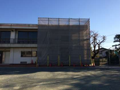また、体育館のひさしの塗装工事も始まっています。学校では今、いろいろな工事が行われています。