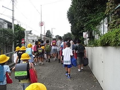 今日から2学期。「おはようございま〜す。」と元気な声でたくさんの子どもたちがあいさつしてくれました。8時の時点で、子どもたちがこのような状態です。「早くお友達に会いたいな。早く先生に会いたいな。夏休みの出来事を友だちにお話したいな。」という思いを胸に、いつもの登校時間よりも早くたくさんの児童が西門近くに集合しました。朝の登校は、8時10分からです。明日からは、ぜひ、たくさんの人が時刻を守って登校してほしいですね。