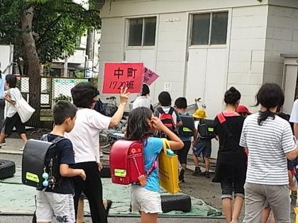 防災の日に合わせて、本校でも引き渡し訓練が行われました。プレハブ校舎に移ったばかりのため、教室がどこなのかと惑わせてしまった面がありましたが、何とか終了しました。引き取りにこれなかった子どもたちは、担当の先生と一緒に地区班別下校をして帰りました。