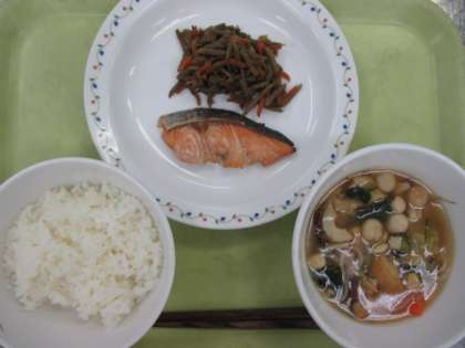 ごはん 牛乳 鮭のゆず風味焼き きんぴらごぼう あんかけ汁