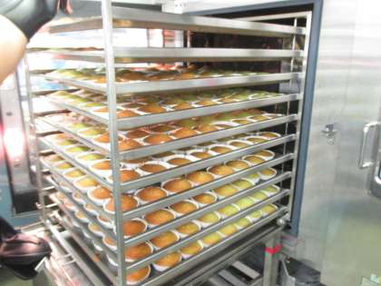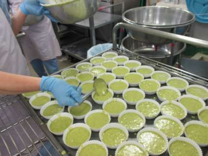 旬の小松菜をゆでてミキサーで細かくし、ケーキに入れました。