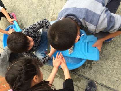 3年生の社会「昔の道具」で洗濯板の学習をしています。この寒い時期に洗濯板で洗濯することの大変さをハンカチやタオルの洗濯で実感したようです。