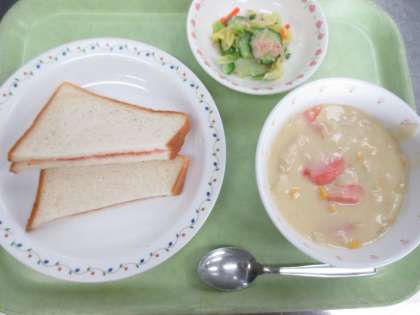ジャムサンド 牛乳 コーンシチュー ツナサラダ