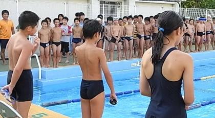 一人一人が小学校生活、最後で最高の記録を目指して、一生懸命泳いでいました。記録会の最後に各学級から代表者が出て、個性豊かに感想やがんばったことを話してくれました。