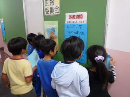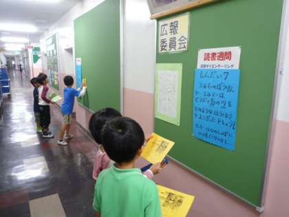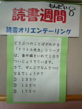 「中休みは、外遊びです。読書オリエンテーリングは、昼休みや他の時間でします。外で元気よく遊びましょう。」という放送が入るほど、子どもたちがなぞ解きに夢中です。1年生も必死で考えています。